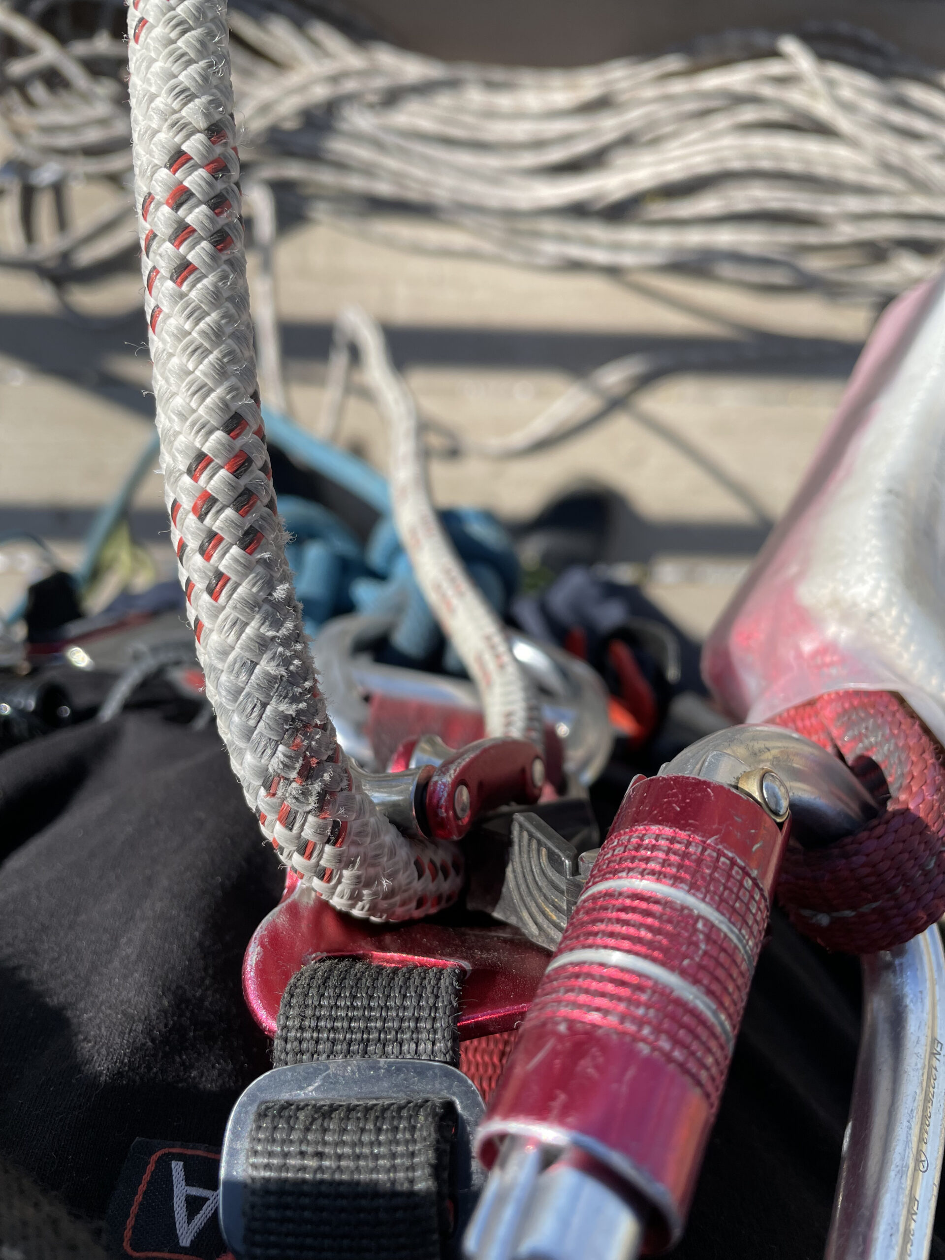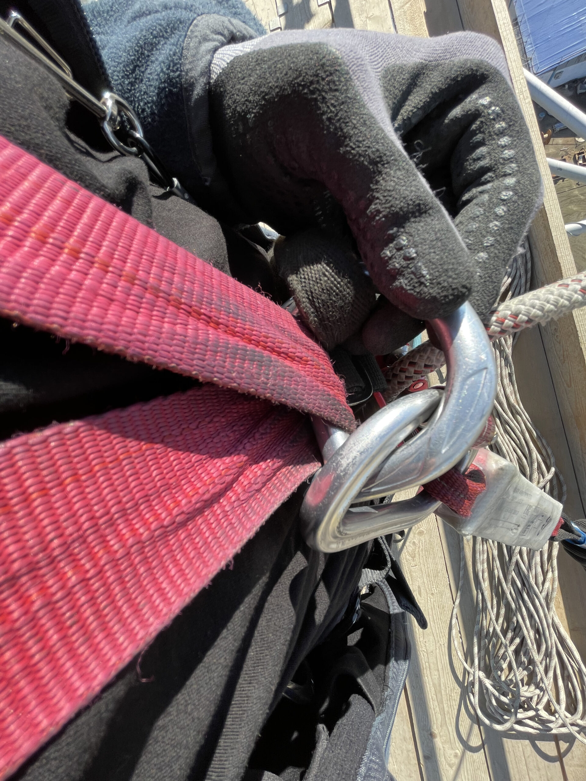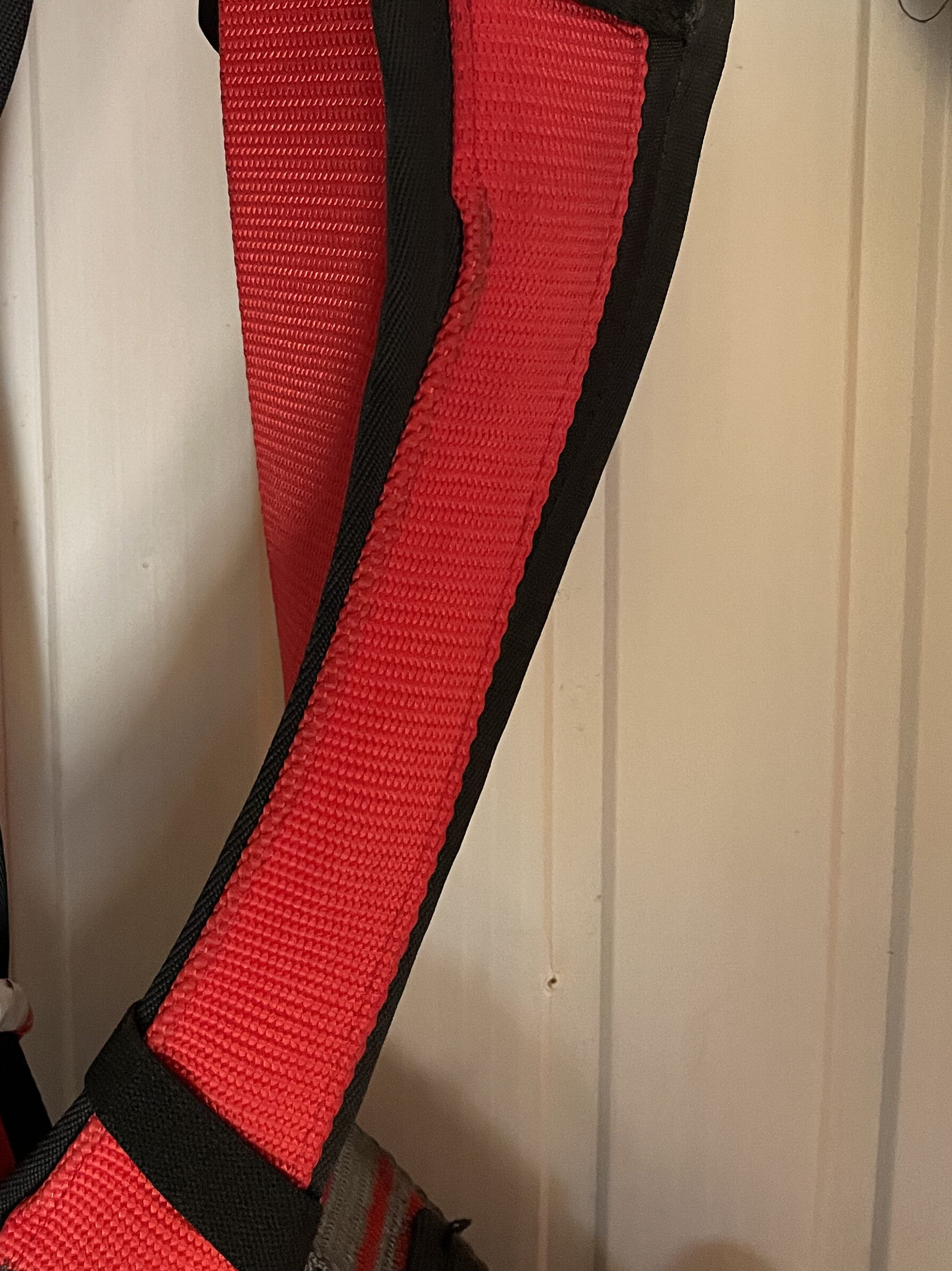 4. 1 adet karın süspansiyonu. Bu halka konumu ipe girene kadar düzgün görünmekte fakat Petzl kemerlere göre daha yukarıda. Bu durum ip üzerinde yükselirken biraz daha kısa adımlar attığınız anlamına gelmekte.