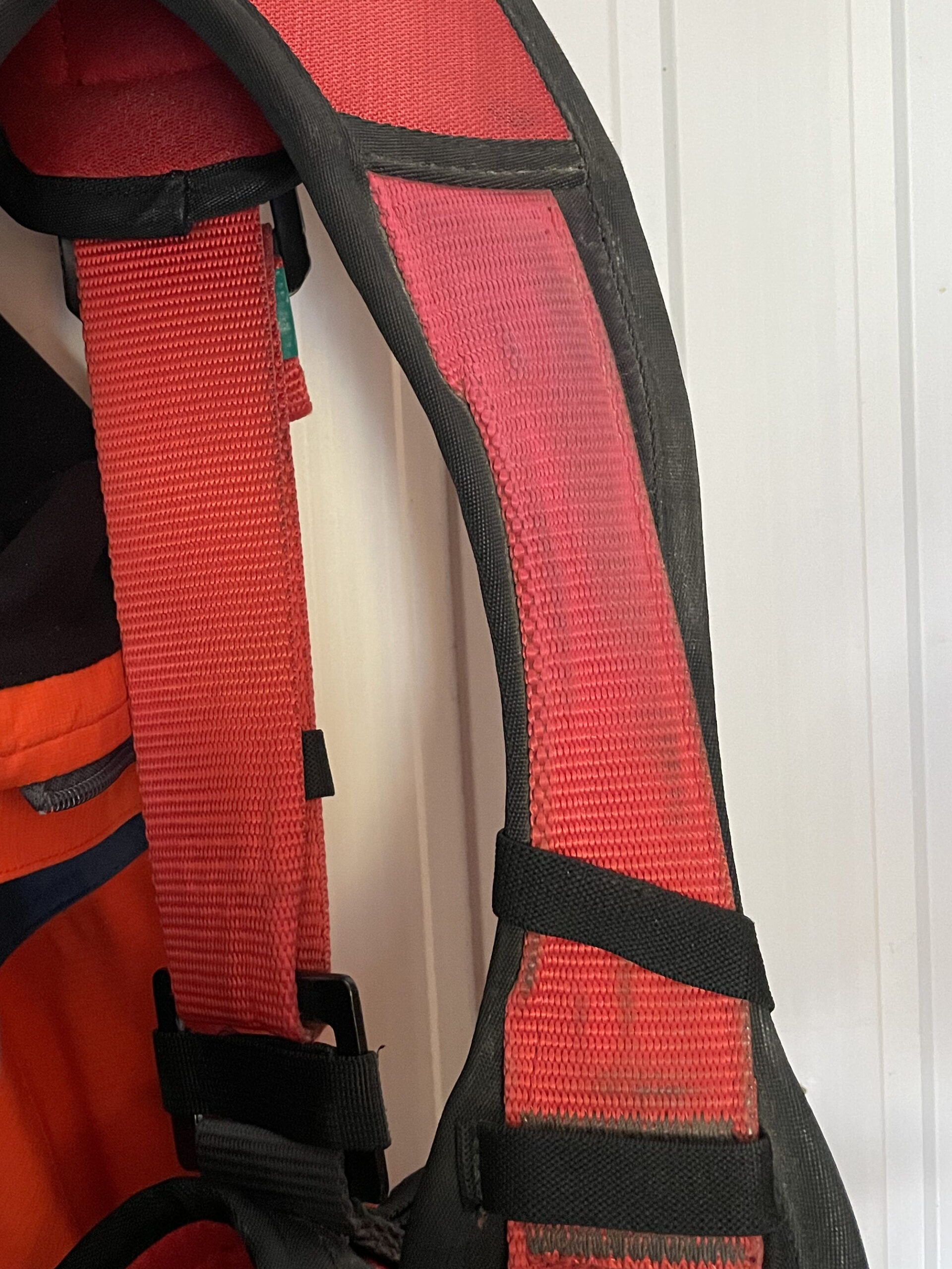 Arka kısımda perlondan yapılmış bir konumlanma halkası daha var. Açıkcası bunu konumlanmak için hiç kullanmadım ve konforlu olacağını da düşünüyorum. Çok sık kullanmadığım ekipmanları asmak için güzel bir halka olmuş. Aynı zamanda oturak taşımak için ideal olur.