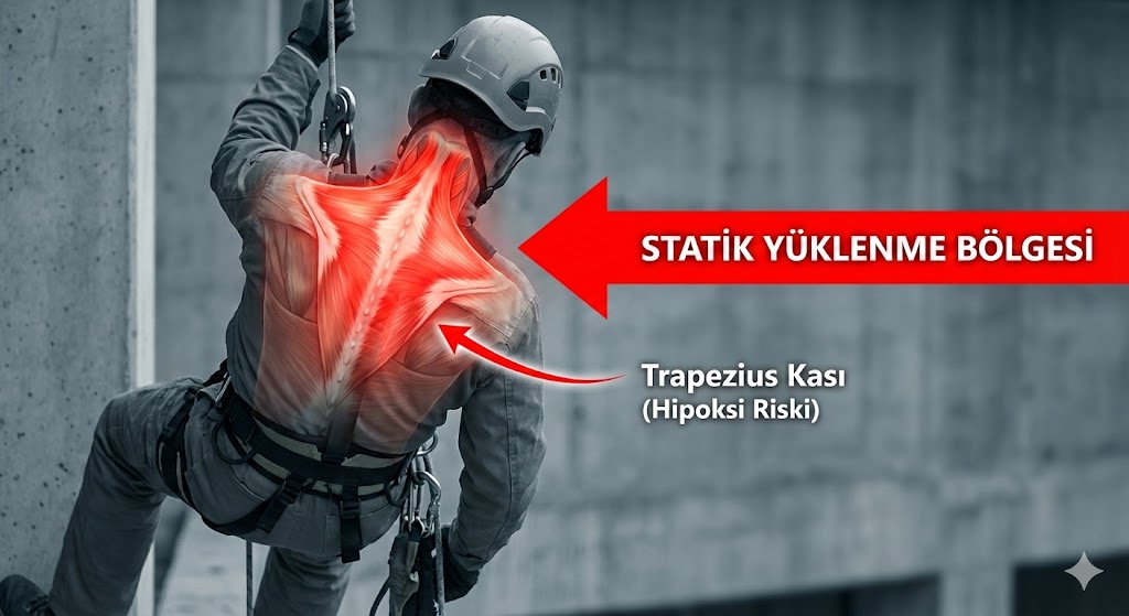 Her ne kadar modern emniyet kemerleri (harness) konforlu olsa da, bacak kolonlarına binen yük, femoral damarlardaki kan akışını kısıtlar. Bu durum, uzun süreli askı çalışmalarında bacaklarda uyuşma ve “Askı Travması” riskini tetikleyen fizyolojik zemini hazırlar.