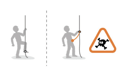 O yüzden soldaki gösterildiği gibi ayağınızda kullanınız. Sağdaki gibi bir el jumarı, bir güvenlik ekipmanı gibi kullanırsanız ÖLÜRSÜNÜZ.