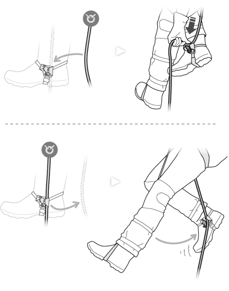Artık sıra ipe girmeye ve ipten çıkmaya geldiğinde. Bunları aşağıda gösterildiği gibi büyük bir kolaylıkla yapabilirsiniz. Yukarı tarafta nasıl ipe girileceği, altında ise nasıl kolaylıkla ipten çıkarılacağı güzel bir şekilde gösterilmekte.